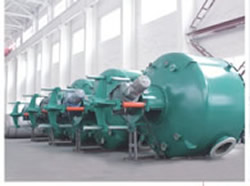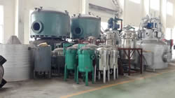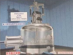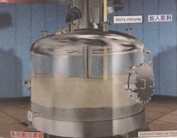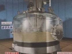 圖①:反應(yīng)釜中的混懸液靠自身的重力或經(jīng)泵注入到過濾器中,然后在濾液接收裝置中抽真空,濾液接收裝置連接在濾液流出口上。 圖②:濾液通過濾床被抽濾至接收裝置,濾餅逐漸在濾床上形成。 圖③:當(dāng)大多數(shù)濾液抽出后,濾床上沉積的濾餅可能還含有5%-20%的溶劑,具體情況與混懸液中固體的性質(zhì)有關(guān)。 圖④:首次過濾完成后,如果需要,可噴淋洗滌液,啟動(dòng)攪拌器反向攪拌,使濾餅重新混懸。 圖⑤:通過操作攪拌器,還可以輕輕地?cái)D壓濾餅,擠出殘余液體。 圖⑥:為了盡可能多地脫除濾餅中的殘留液體或溶劑,過濾器可加上夾套,在其中通蒸汽或熱水加熱干燥。在過濾器的頂部和底部同時(shí)抽真空,殘留溶劑揮發(fā),通過接收裝置上的冷凝器濃縮并回收。對(duì)有些物料,執(zhí)行上述流程即可,毋須另配干燥器進(jìn)行干燥。 圖⑦:最后,經(jīng)過攪拌器在卸料方向的旋轉(zhuǎn)和同時(shí)的下降運(yùn)動(dòng),攪拌器刮鏟一層一層地順序?qū)V餅刮出,濾餅可從卸料口自動(dòng)出料。 圖⑧:攪拌器的攪拌漿和刮鏟示意。 紐克多功能過濾器系統(tǒng)具備如下優(yōu)點(diǎn): 1、系統(tǒng)封閉:此設(shè)備是一個(gè)全封閉運(yùn)行的系統(tǒng),能完全避免生產(chǎn)過程中溶劑對(duì)空氣的污染,同時(shí)能減少因與毒性物接觸而導(dǎo)致操作人員中毒事故的發(fā)生。 2、回收完全:物料和溶劑近乎完全回收,避免因物料遺漏和溶劑揮發(fā)而引起的浪費(fèi),具有很大的經(jīng)濟(jì)效益,特別是處理物料和使用溶劑價(jià)值較高時(shí)更是如此。 3、同時(shí)干燥:過濾、清洗和干燥能在同一設(shè)備中完成。容器壁可以配備加熱套層,從而能夠進(jìn)行干燥的操作。 4、操作連續(xù):能夠使過濾和干燥在一個(gè)連續(xù)的系統(tǒng)內(nèi)進(jìn)行,毋須處理濕濾餅。在過濾器下可以連接一個(gè)干燥器,使?jié)駷V餅直接卸入干燥器,干燥后的產(chǎn)品可以機(jī)械傳送至稱量、包裝等工段。 5、節(jié)約人力:一個(gè)經(jīng)過簡單培訓(xùn)的非技術(shù)人員即可以完成操作。開、關(guān)、自動(dòng)進(jìn)料、自動(dòng)出料都毋須技術(shù)人員監(jiān)控。 6、清洗徹底:由于此設(shè)備具有自動(dòng)噴淋和重新打漿的功能,濾餅可以得到非常徹底的清洗。并且洗滌液用量較其它類型設(shè)備少,可減少排污量和降低廢水處理費(fèi)用。 7、清洗生產(chǎn):此多功能過濾器干燥系統(tǒng)裝配有粉塵捕集器,能完全收集干燥后產(chǎn)生的粉塵,可滿足高潔凈度的生產(chǎn)操作要求。 |